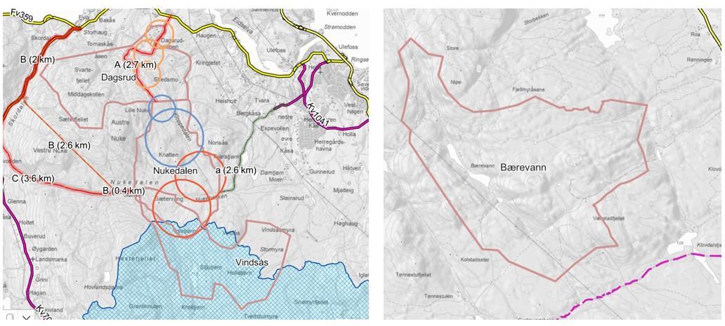 Område 1 Nukedalen - Vindsås med atkomst via Dagsrud og område 2 BærevannDet er viktig at innbyggerne får komme til orde